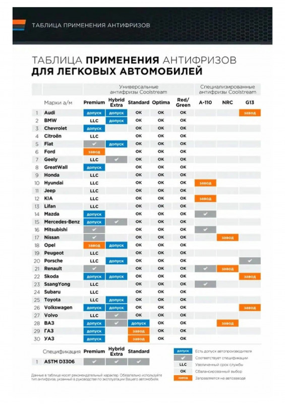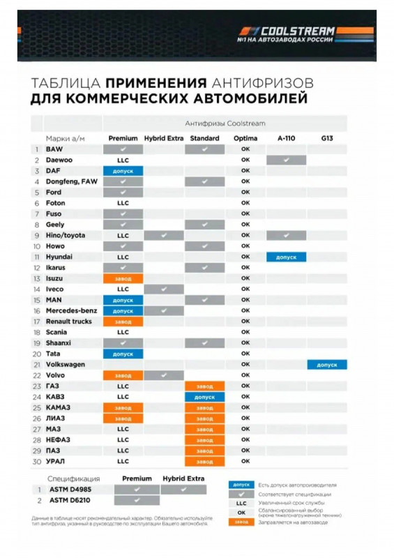 Разумный выбор для автомобилей, где замена охлаждающей жидкости производится сравнительно часто.Повышенная эффективность охлаждения двигателя.Высокая стабильность эксплуатационных свойств.Улучшенная совместимость с пластиками и эластомерами