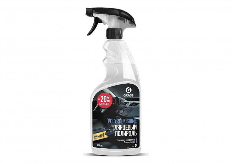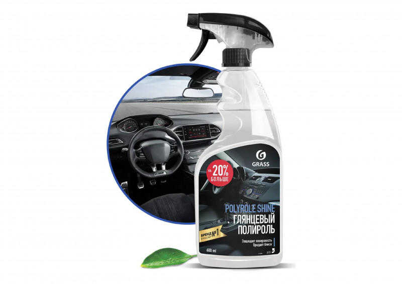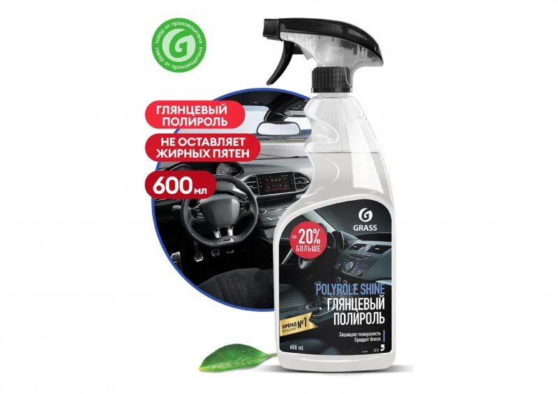 Глянцевый полироль для кожи, резины и пластика Grass Polyrole Shine 600 мл 110388 – профессиональное средство для очистки и полировки поверхностей салона автомобиля. Позволяет сохранить первоначальный цвет, придает глянцевый блеск. Обработанные средством поверхности приобретают антистатические свойства, что препятствует оседанию пыли. Полироль не оставляет разводов, обладает приятным ароматом.