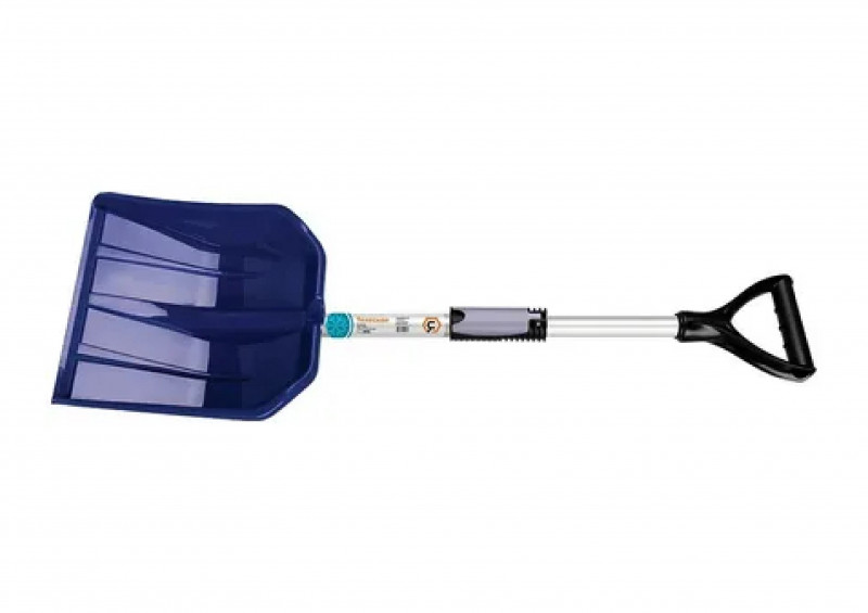 Лопата снеговая автомобильная. 5 лет гарантия на пластик. Телескопический алюминиевый черенок (диапазон хода 16 см.). Надёжный механизм фиксации длины черенка (без самопроизвольного складывания и вращения по оси). Прочный морозостойкий пластик. Эргономичная рукоятка. Общая длина: 80-96 см. Размеры совка: 29*32 см.