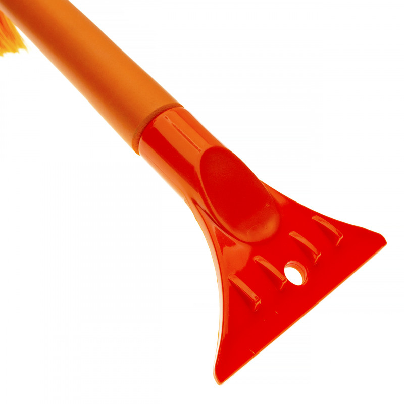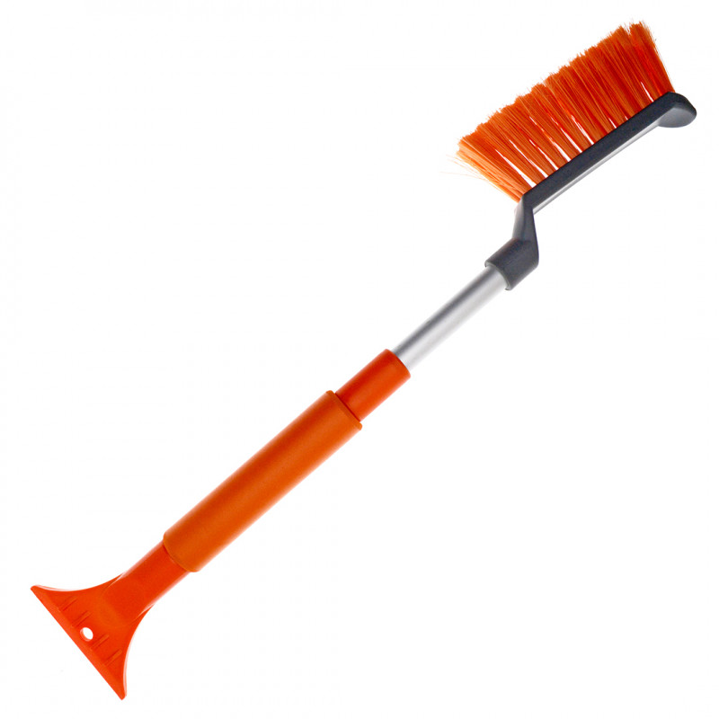 Телескопическая автомобильная двусторонняя щетка, длиной от 540мм до 680мм. С одной стороны мощный скребок с зубьями-ледоколами, 95мм шириной, для удаления льда со стекол, а с другой стороны упругая, распущенная щетина средней жесткости, длиной 160мм, шириной 30мм и высотой 55мм. Корпус рукоятки выполнен из толстостенного алюминиевого, круглого профиля. Для продолжительных работ на рукояти предусмотрен мягкий, теплый держатель.