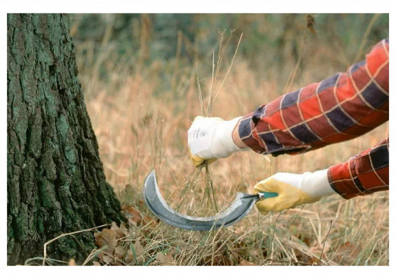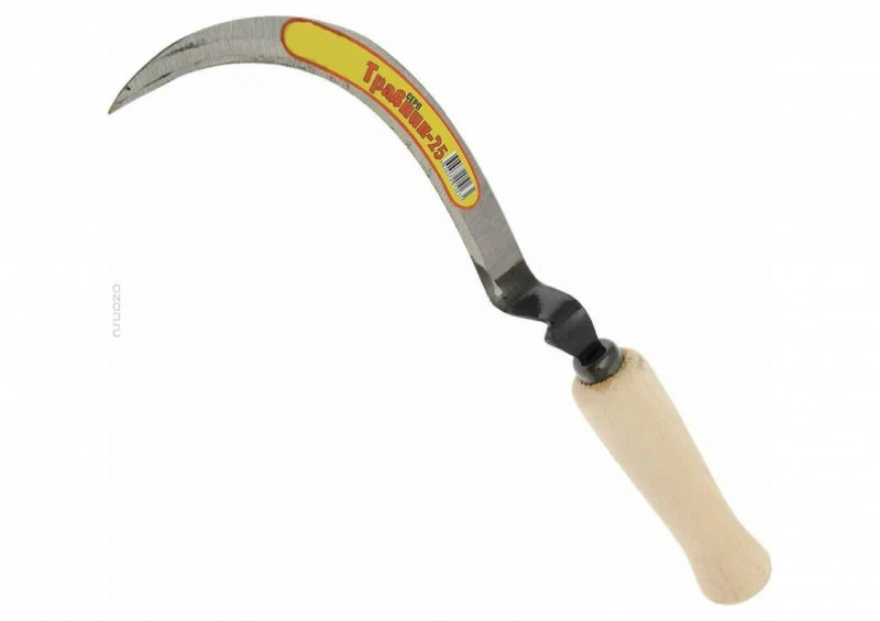 Предназначен для скашивания травы на дачном участке, а так же для заготовки корма домашним животным. Лезвие инструмента выполнено из высококачественного металла, а рукоять из дерева.