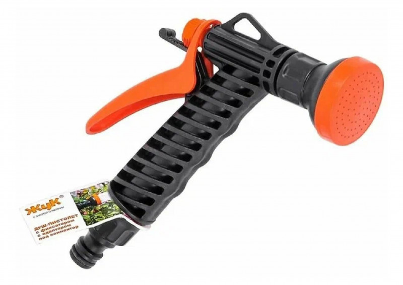 Душ-пистолет поливочный с фиксатором ЖУК 1/2-3/4 в наличии по цене 201 рублей в интернет-магазине «ЖЕЛЕЗО» в в Саранске. Мы предлагаем лучшую стоимость на категорию поливочная система. Приобрести Душ-пистолет поливочный с фиксатором ЖУК 1/2-3/4 можно оформив заказ в интернет-магазине, или отправив заявку по почте, а также по телефону 8 (800) 444-50-26 или в магазине. Бесплатная доставка при заказе от 1000 руб.
