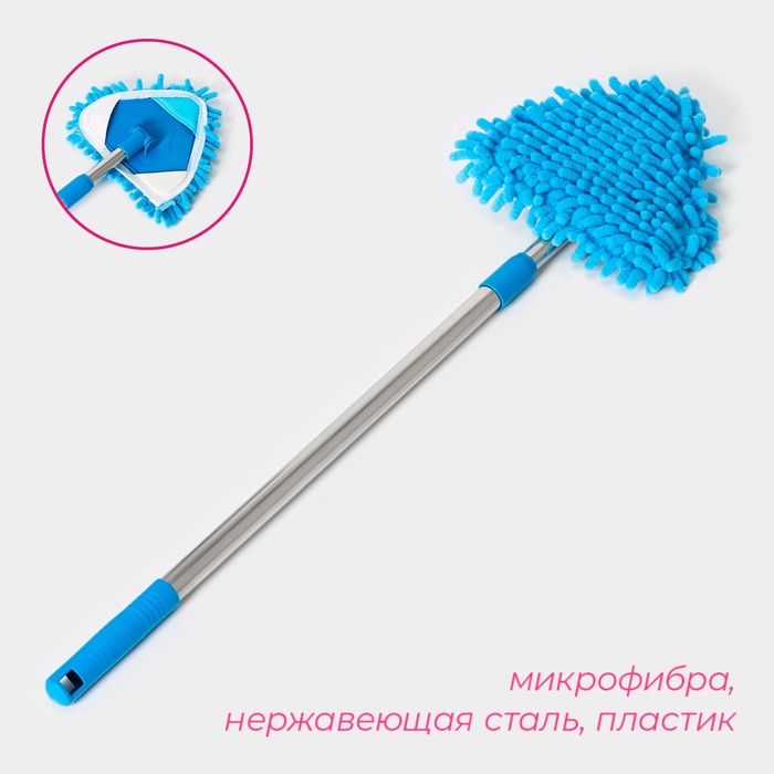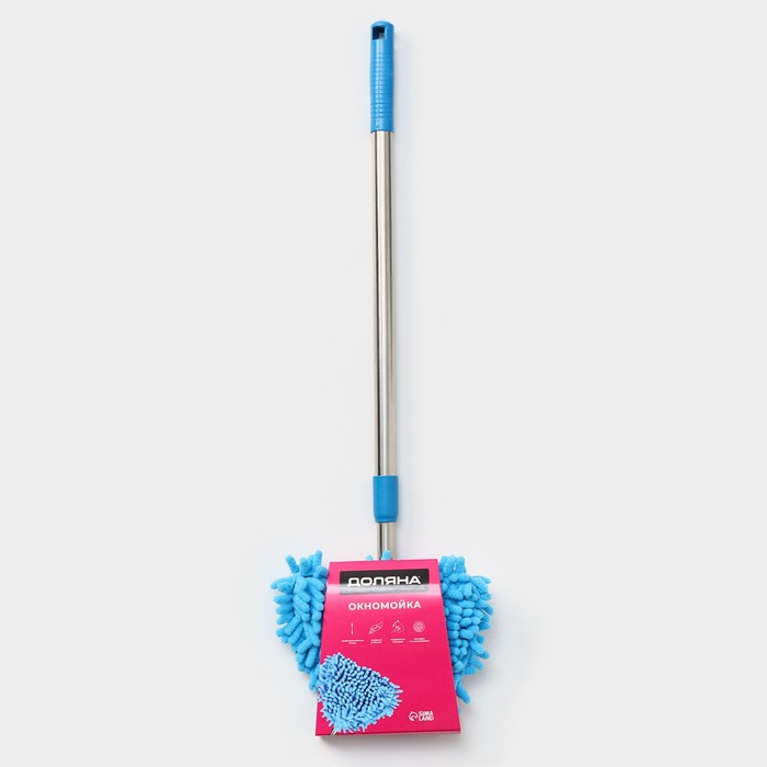 Окномойка с телескопической металлической ручкой,13х13х55(92)см, цвет синий