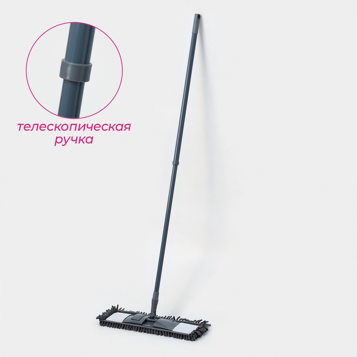 Швабра для мытья пола плоская,насадка микрофибра букли 42х12см,телескопическая ручка 70-120см