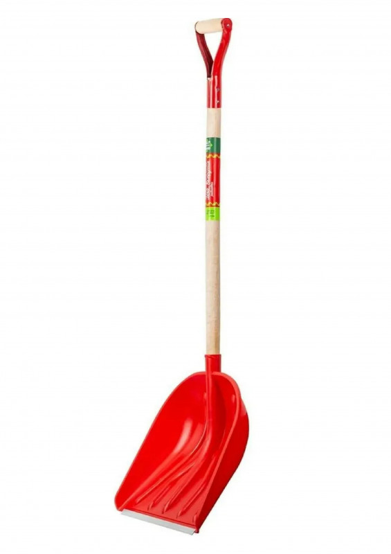 Лопата для уборки снега оснащена прочным пластиковым ковшом с алюминиевой окантовкой внешней рабочей кромки. Прочный черенок из березы и металлическая рукоятка.