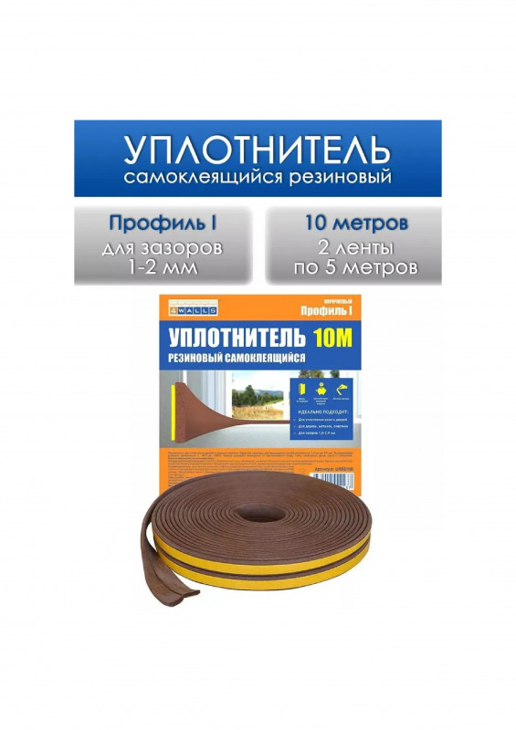 Уплотнитель для окон и дверей WALLS I-профиль резиновый коричневый 10м