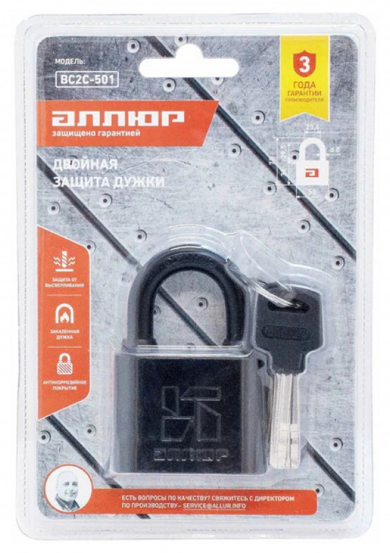 Замок навесной ВС2С-501 d-9мм Аллюр черный