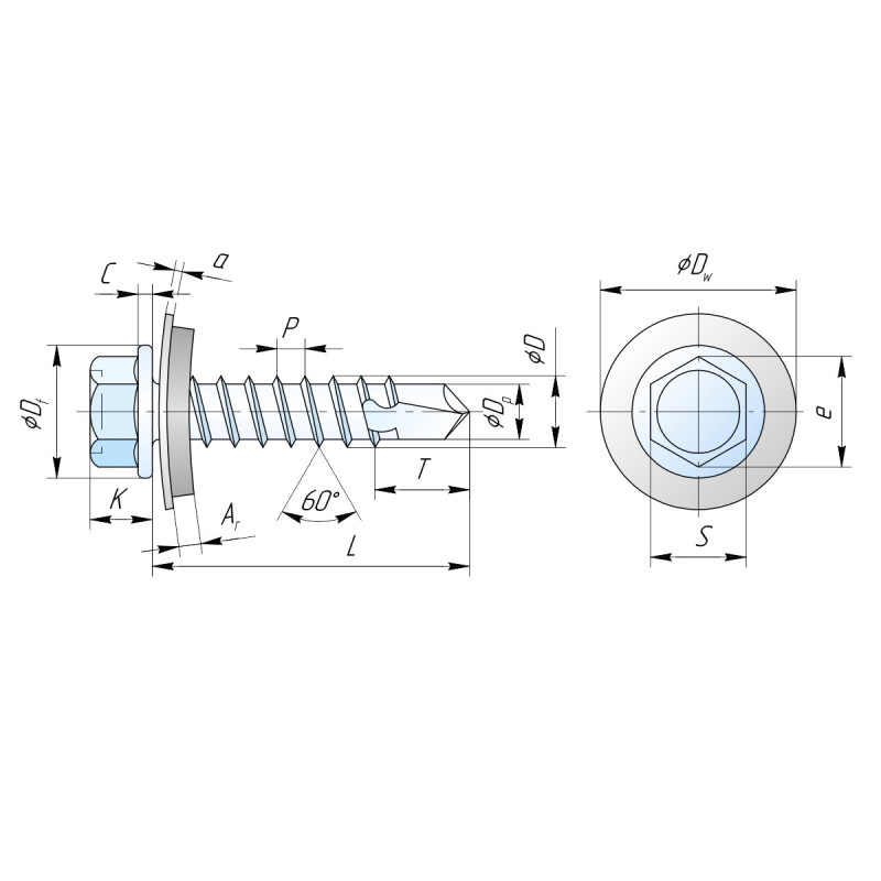 кровельный саморез имеет острый или сверлящий наконечник и шайбу с резиновой прокладкой. Резиновая прокладка служит для гидроизоляции крепления, устойчива к постоянным изменениям нагрузок, перемене температур и другим внешним условиям. Кровельный саморез вкручивается и с помощью шайбы, плотно притягивает кровельный материал к каркасу крыши, также за счет шайбы предотвращается попадание воды в места стыка. Кровельные саморезы представлены 2-х видов, в зависимости от материала использования. Кровельные саморезы диаметра 4.8 специально разработаны для крепления кровли к дереву, они имеют характерный редкий шаг резьбы и уменьшенное сверло. Кровельные саморезы диаметром 5.5 и 6.3 напротив созданы для монтажа в металл, на что указывает частая резьба и увеличенная сверловая часть.