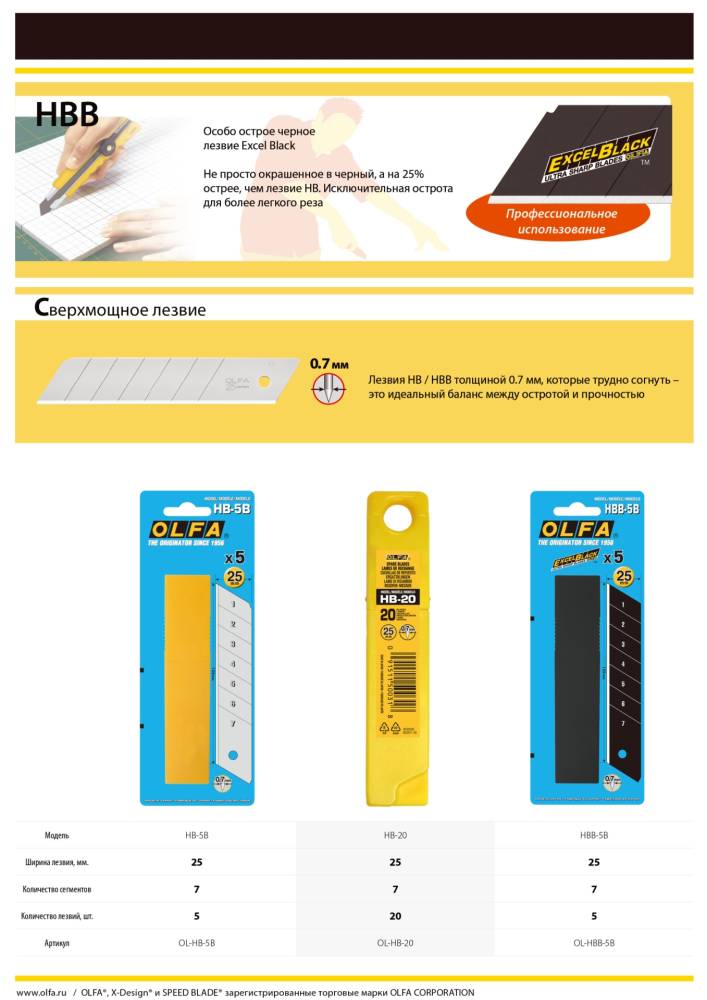 Лезвие OLFA "EXCEL BLACK" сегментированное 5шт 25х126х0,7мм OL-HBB-5B