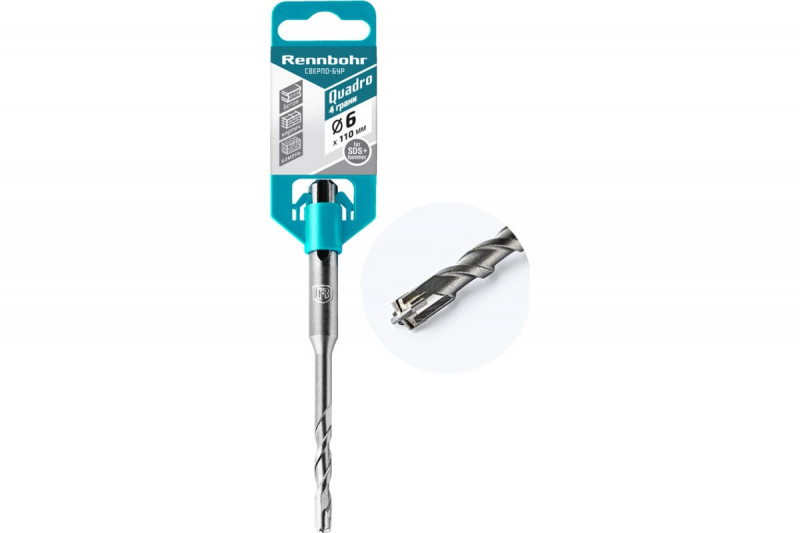Бур SDS-plus по бетону 4 грани 6х160мм RennBohr Quadro